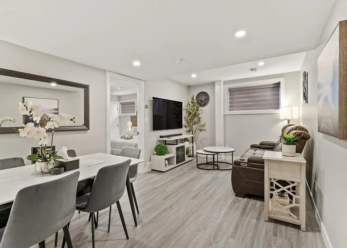 Die 70 m^2 großen Luxury Living Entire Suite-Private YYC liegt im Bezirk Southwest Calgary von YYC und bietet seinen Gästen WLAN und Parkplätze. Moraine Lake ist ungefähr 10 Minuten Autofahrt von diesem Apartment entfernt, während Zion Springs Church circa 10 Fahrminuten von hier entfernt liegt.